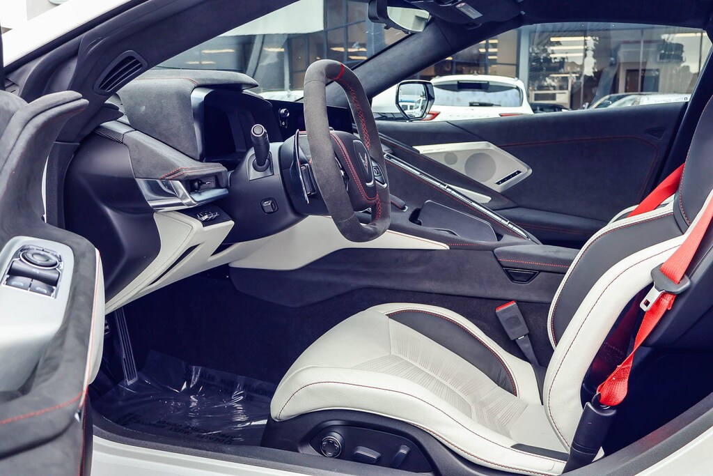 - Ceramic White leather seating surfaces with Red stitching and Torch Red seat belts